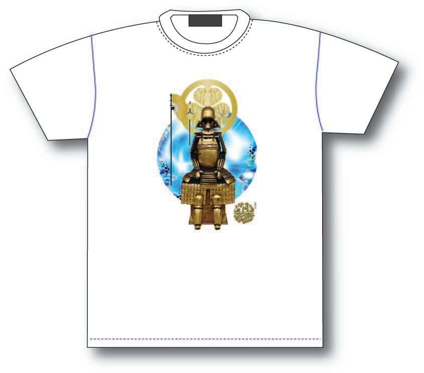 タイトルロゴ使用許諾商品。「どうする家康」タイトルロゴと徳川「葵」家紋、金陀美具足を配置したオリジナルデザイン。素材:綿100% /白ボディ5.3オンス/ 前面ダイレクトインクジェット印刷/ サイズ:M/L/XL